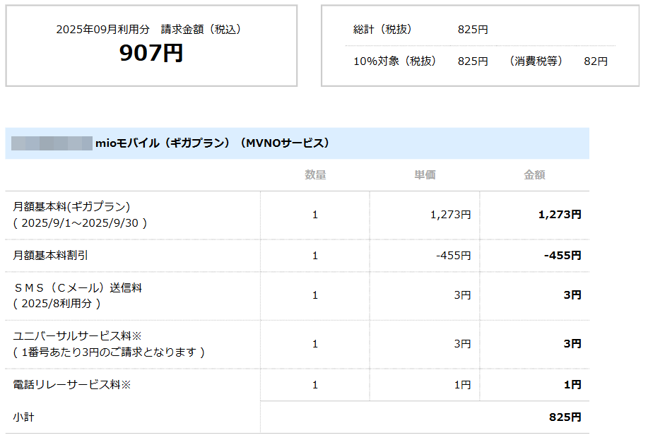 [次月] 初期費用(SIMカード発行手数料 等)+月額利用料